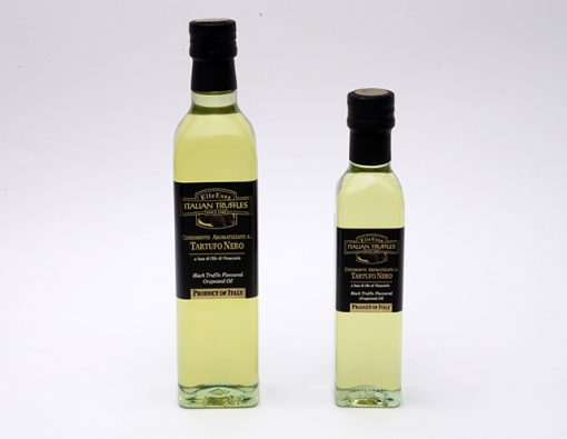 Olio di vinacciolo all’inconfondibile aroma del tartufo nero. Ideale per cuocere le uova, per condire pizze e bruschette; o da aggiungere a crudo su primi piatti o carni, per conferire l’inconfondibile gusto del tartufo.