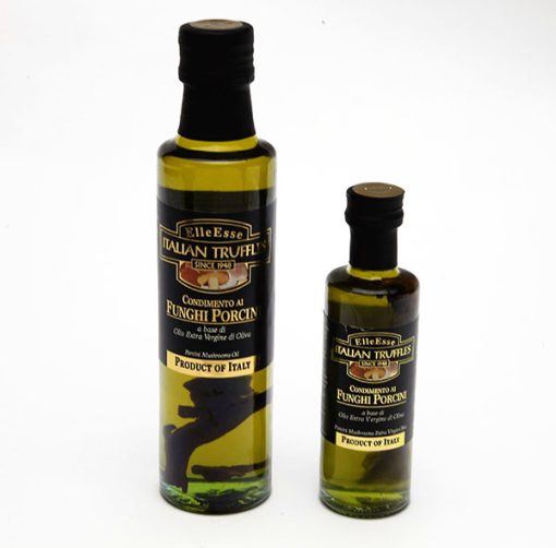 Pregiato olio extra vergine d’oliva al gusto dei funghi porcini. Ideale su pizze, bruschette, pasta e risotti, e su piatti di carne.