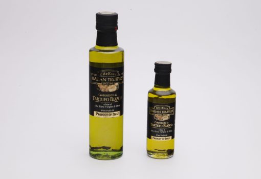 Pregiato olio extra vergine d’oliva, al delicato aroma di tartufo bianco. Ideale per cuocere le uova, per condire pizze e bruschette; o da aggiungere a crudo su primi piatti o carni, per conferire l’inconfondibile gusto del tartufo.
